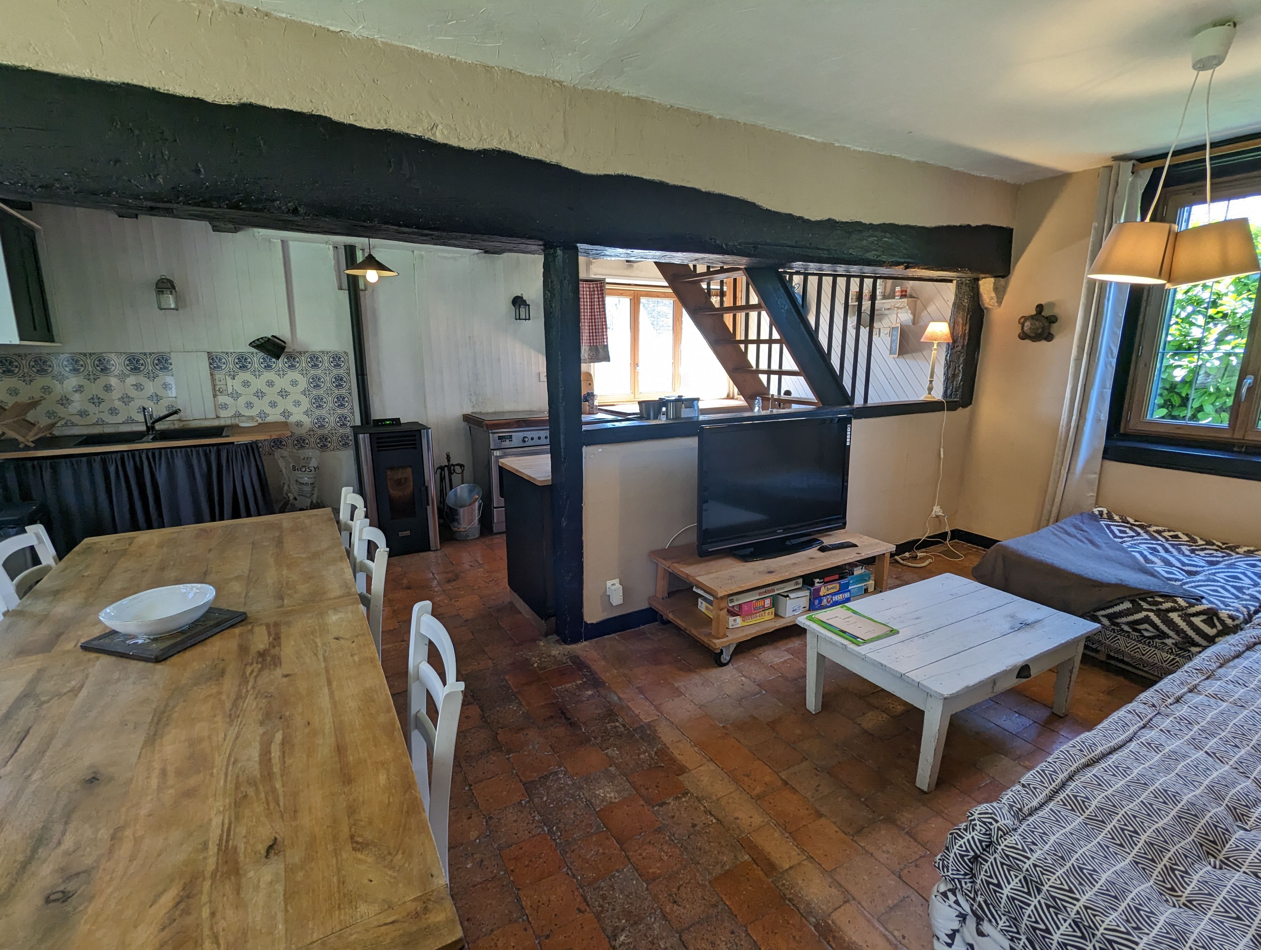 Bauernhaus am Rande der Loire mit dem Fahrrad zwischen dem Schloss von Sully sur Loire und der Abtei von Fleury, bestehend im Erdgeschoss aus einem großen Schlafzimmer mit BB-Bett, Bad, WC, einem Wohnzimmer mit Küche, Esszimmer Zimmer und Wohnzimmer. Im Obergeschoss ein Schlafzimmer, ein Badezimmer mit WC und ein Schlafsaal, der Platz für bis zu 8 Personen bietet. Privater Garten. Überdachter Parkplatz
