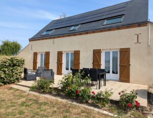 On a farm, gîte comprising on the ground floor: large living room-lounge, fitted kitchen, toilet. Upstairs: 3 bedrooms (1 double bed, 3 single beds), shower room, toilet. Electric heating. Outside area, terrace, swings, garage. Deposit.