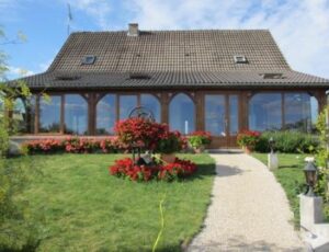 1 chambre (1 lit 160, 1 fauteuil BZ 1 personne), salle d'eau et wc privative. 1 chambre (2 lits 90), salle d'eau et wc privative. Salle à manger avec canapé BZ pouvant accueillir deux personnes et kitchenette équipée d'un réfrigérateur, un micro-ondes, une bouilloire, une cafetière, etc est à disposition. Nous pouvons accueillir une famille ou groupe d'amis jusqu'à 7 personnes. Le petit déjeuner est servi selon la saison, auprès de la cheminée dans la salle à manger commune ou bien dans la véranda exposée plein sud. L'équipement bébé est à votre disposition : lit parapluie, chaise haute. Un garage fermé accueille les vélos des cyclotouristes et un grand parking sécurisé pour les voitures et motos